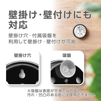 通過使用附帶的臂形吸盤,您可以將其固定在透明的儲物盒中,從外面可以看到濕度和溫度。*吸盤不能在不光滑、骯髒或不平坦的表面上使用。